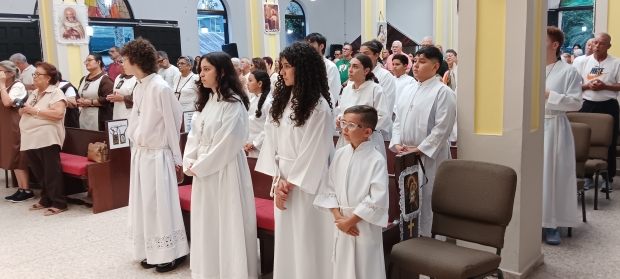 Los servidores del altar son niños y jóvenes de la comunidad parroquial que ayudan al sacerdote y al diácono durante la Eucaristía y otras ceremonias litúrgicas. Sus ocupaciones incluyen ayudar con el servicio del altar, llevar la cruz, los cirios, el incensario y el Misal, y asistir en la preparación de los dones. Esta gracia permite a los jóvenes participar cerca en la liturgia, así como desarrollarse en su servicio a Dios y a la comunidad.